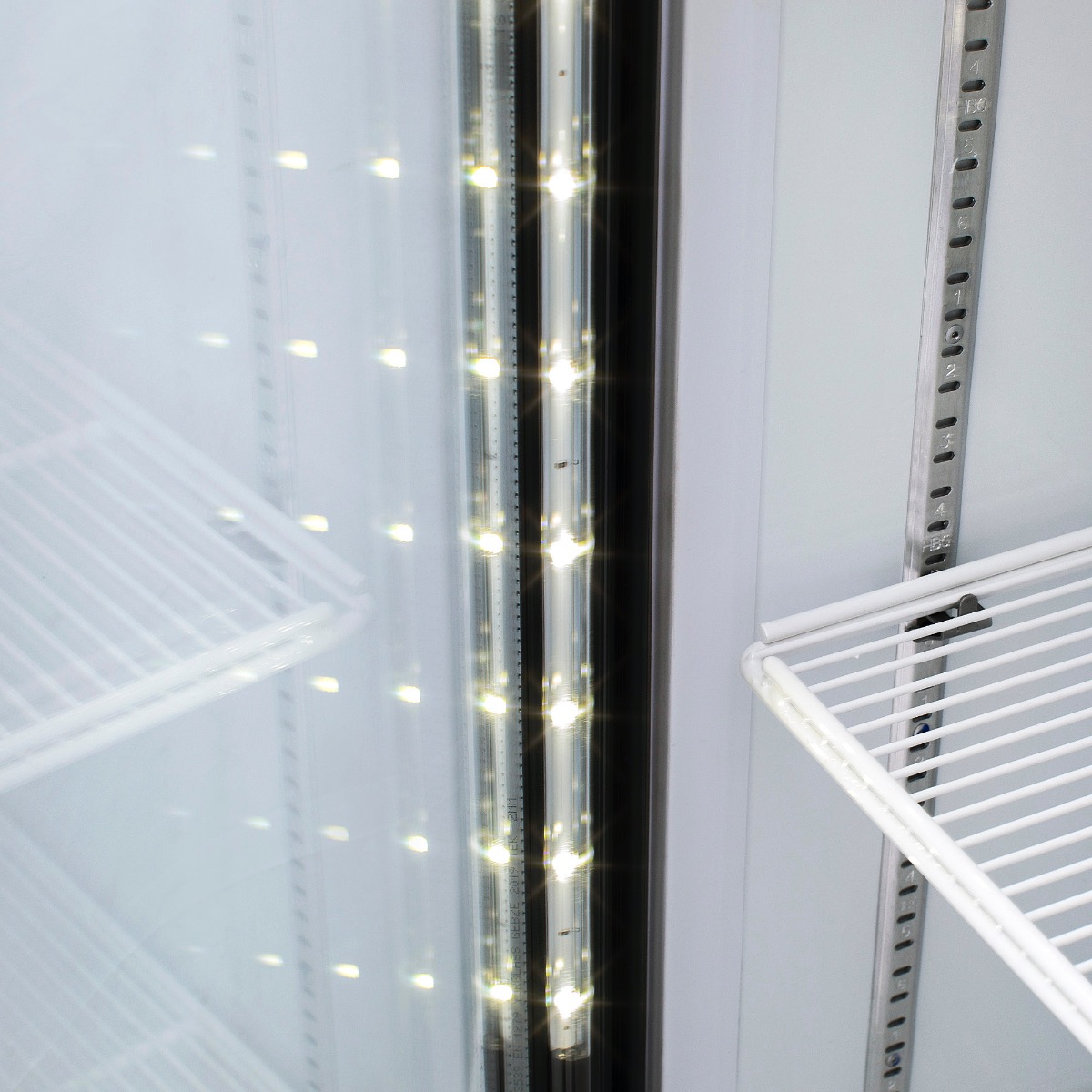 La iluminación LED de alta eficiencia usa solo una pequeña parte de la energía y tiene una vida útil más de diez veces mayor que un foco fluorescente, lo que garantiza una iluminación excelente de los productos refrigerados.