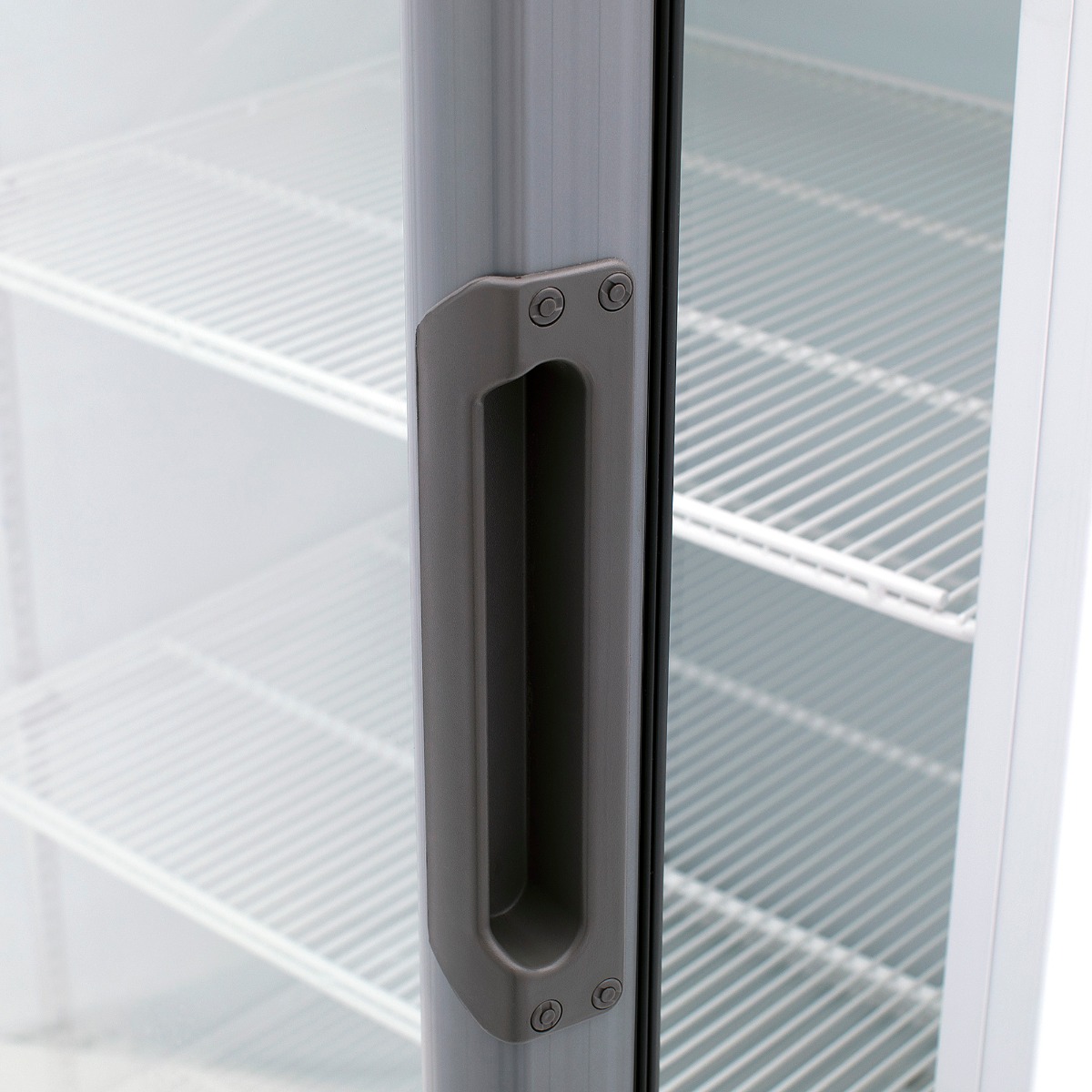 Las puertas de alta eficiencia están compuestas por un doble panel de vidrio templado, con gas Argón y película Low-E, lo que reduce la transferencia de calor por radiación, mejorando así la eficiencia energética.
